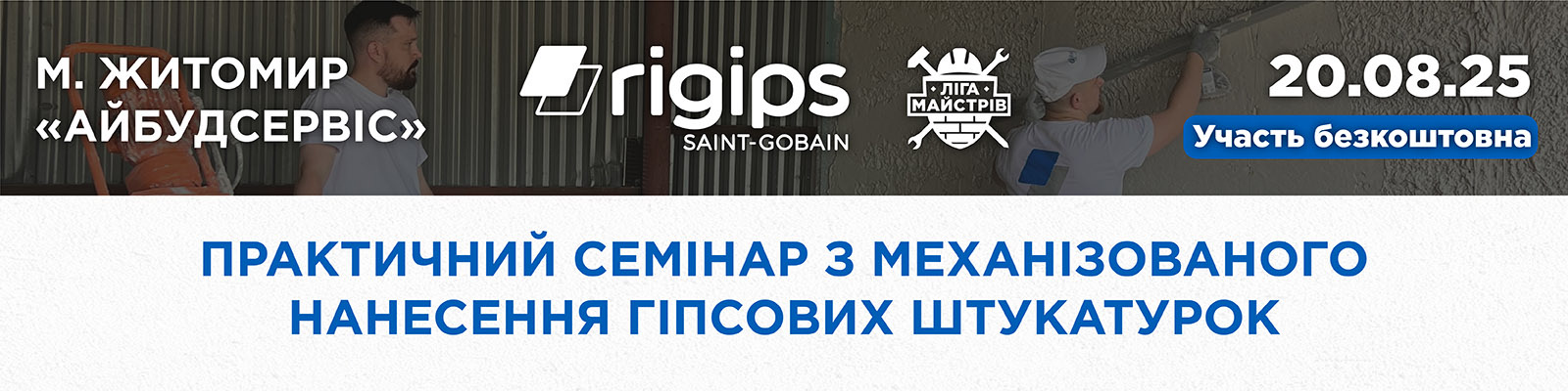 11:00-11:30 Презентація машинної штукатурки Rigips MPG та інших гіпсових сумішей. – Владислав Чушкін – керівник напрямку технічного навчання Сен-Гобен Україна